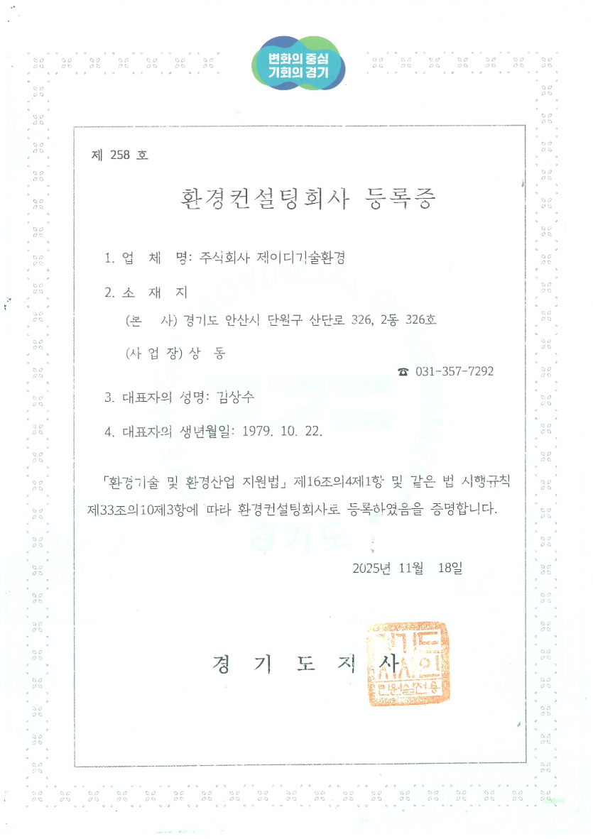 주식회사 정도기술환경 대표:김상수 사업자등록번호:483-86-03244